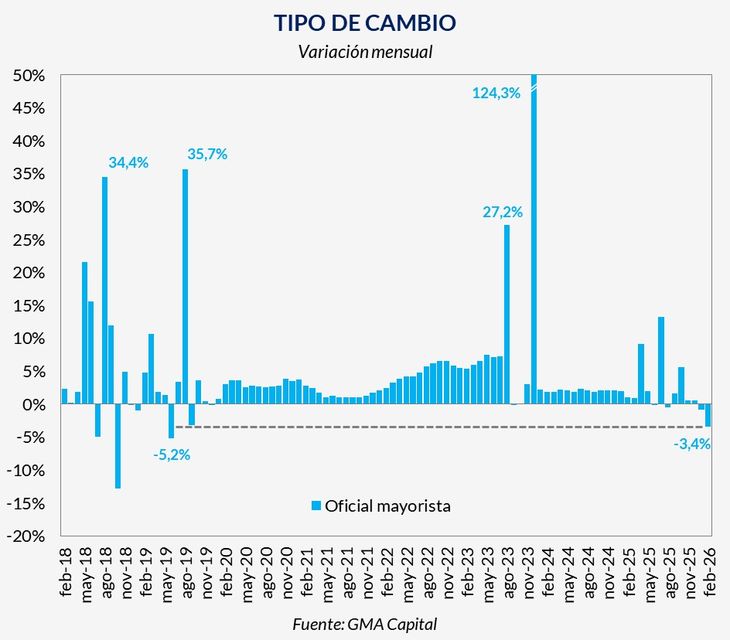 En esa misma línea, el economista Andrés Salinas expresó a este medio que marzo no debería ser un mes en el que se observe una marcada volatilidad sobre el tipo de cambio, sino más bien una continuidad de la dinámica de febrero: con una oferta superior a la demanda, pese a las compras diarias del BCRA.