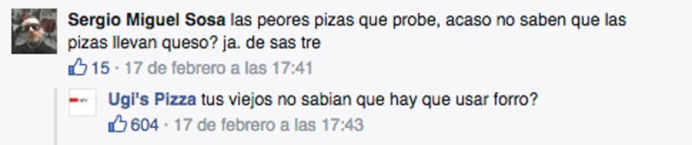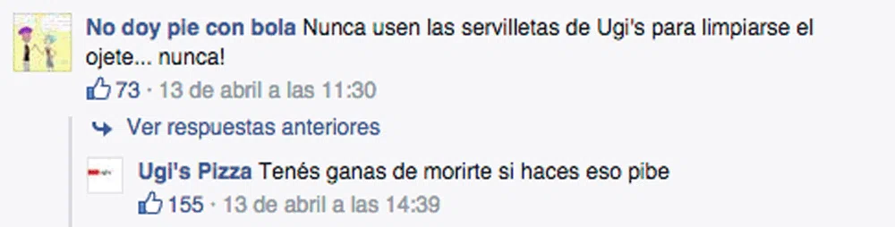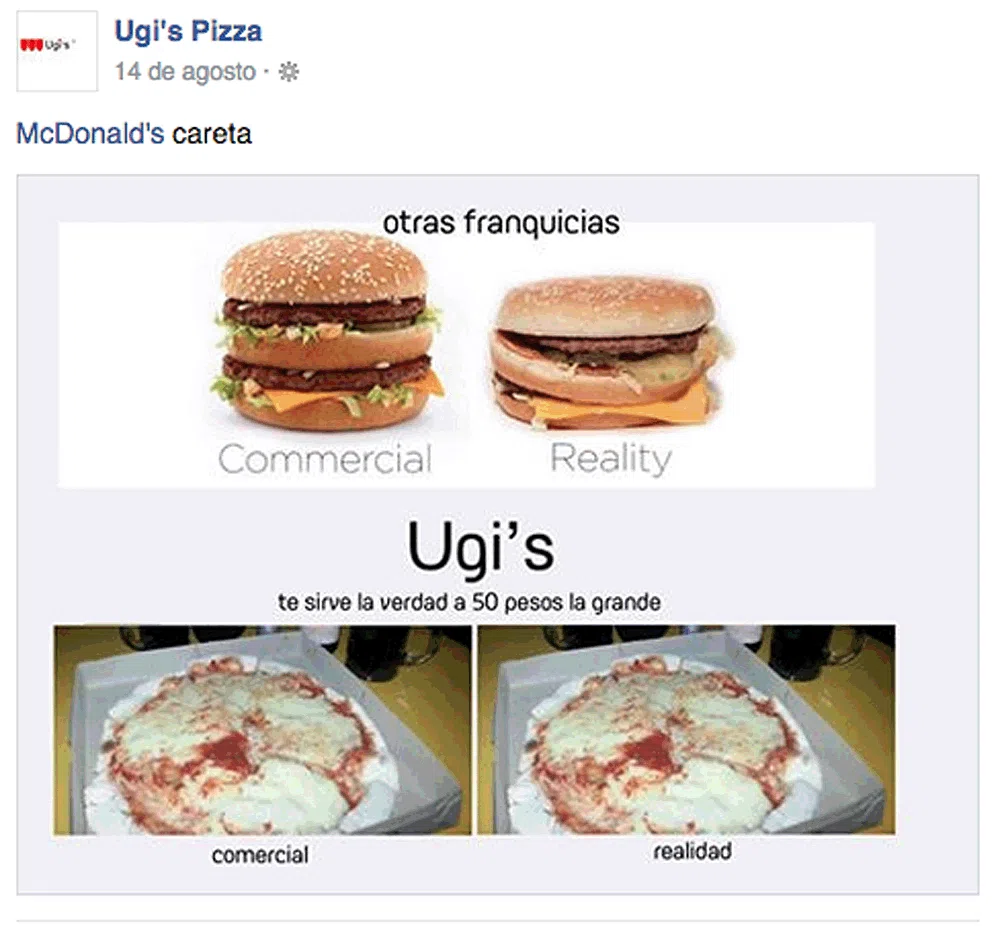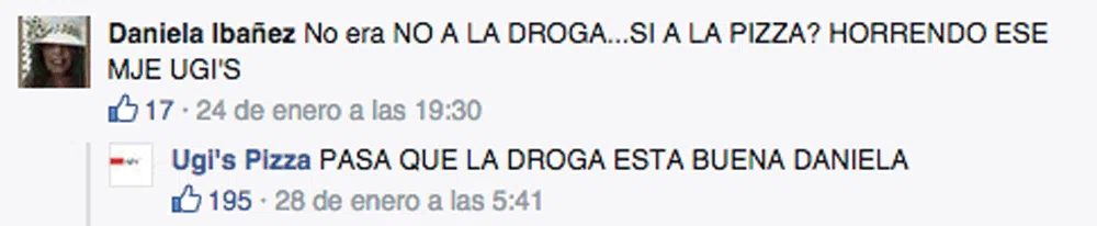 Ugi’s Pizza, la cadena de pizzerías low-cost de Argentina, decidió quemar ese manual, pisotearlo y tirarlo a la basura. Durante años, su estrategia en redes sociales (principalmente Facebook) fue un ejercicio glorioso de anti-marketing: insultar a sus clientes, despreciar sus propias pizzas y tratar a su comunidad con una honestidad brutalmente incorrecta.