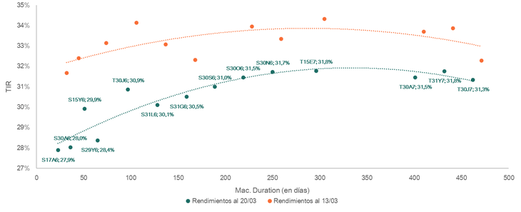 Los Bonos CER avanzaron hasta 1,5% en la jornada. Al respecto, el economista Javier Giordano destacó que una “fenomenal compresión de la curva de tasa fija en todos los tramos”, donde el tramo corto rinde actualmente por debajo de 28% TIR – 2,08% TEM, al timepo que todos los títulos cotizan por debajo de 32% TIR – 2,34% TEM.