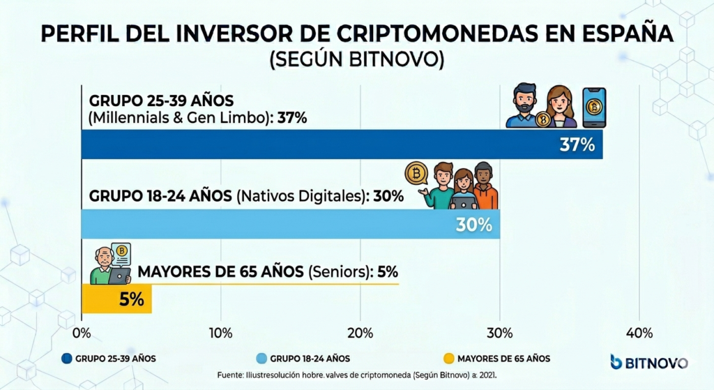 Aunque el inversor típico sigue siendo un hombre de entre 25 y 39 años con estudios universitarios y elevada tolerancia al riesgo, el mercado muestra una clara expansión en distintos segmentos demográficos, tanto hacia los más jóvenes como hacia los seniors.