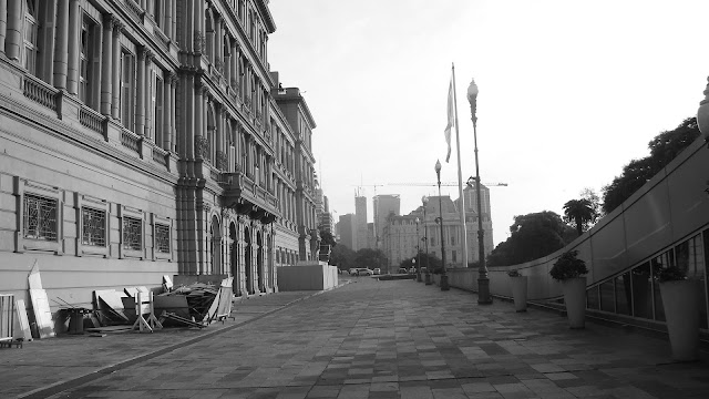 El pasillo entre el edificio de la Casa Rosada y el Museo del Bicentenario