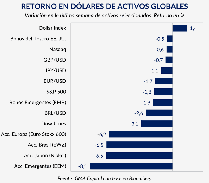 El recrudecimiento del conflicto volvió a activar episodios de “flight to quality”, es decir, el desplazamiento de los inversores hacia activos considerados refugio. Según un informe de GMA Capital, el principal canal de transmisión hacia los mercados es el impacto en el precio del petróleo y en las expectativas de inflación global.